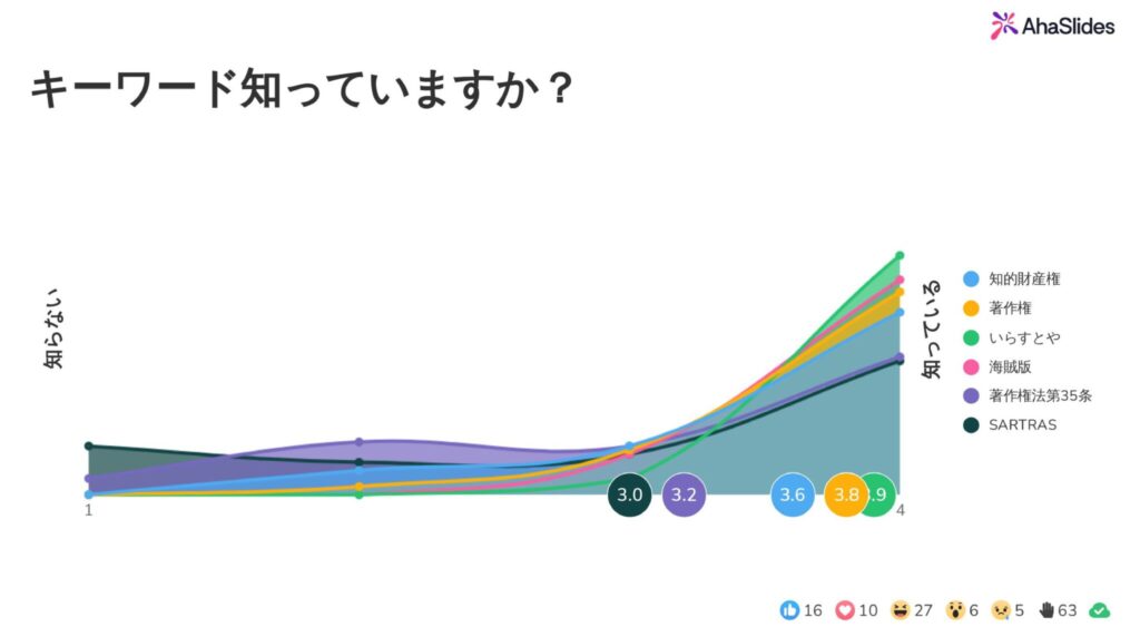 私の研修では、参加者との対話を重視しています。今回も、双方向コミュニケーションツール「AhaSlides(アハスライド)」を活用し、リアルタイムの投票や質問を受け付けながら進める参加型形式をとりました。