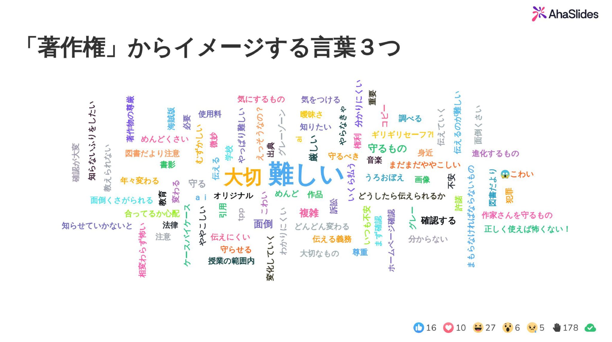 「まさに今年度から生成AIを業務で使い始めていたので、著作権との関係性がクリアになった気がしました。これからも良い意味で怖がりながら活用したいです」