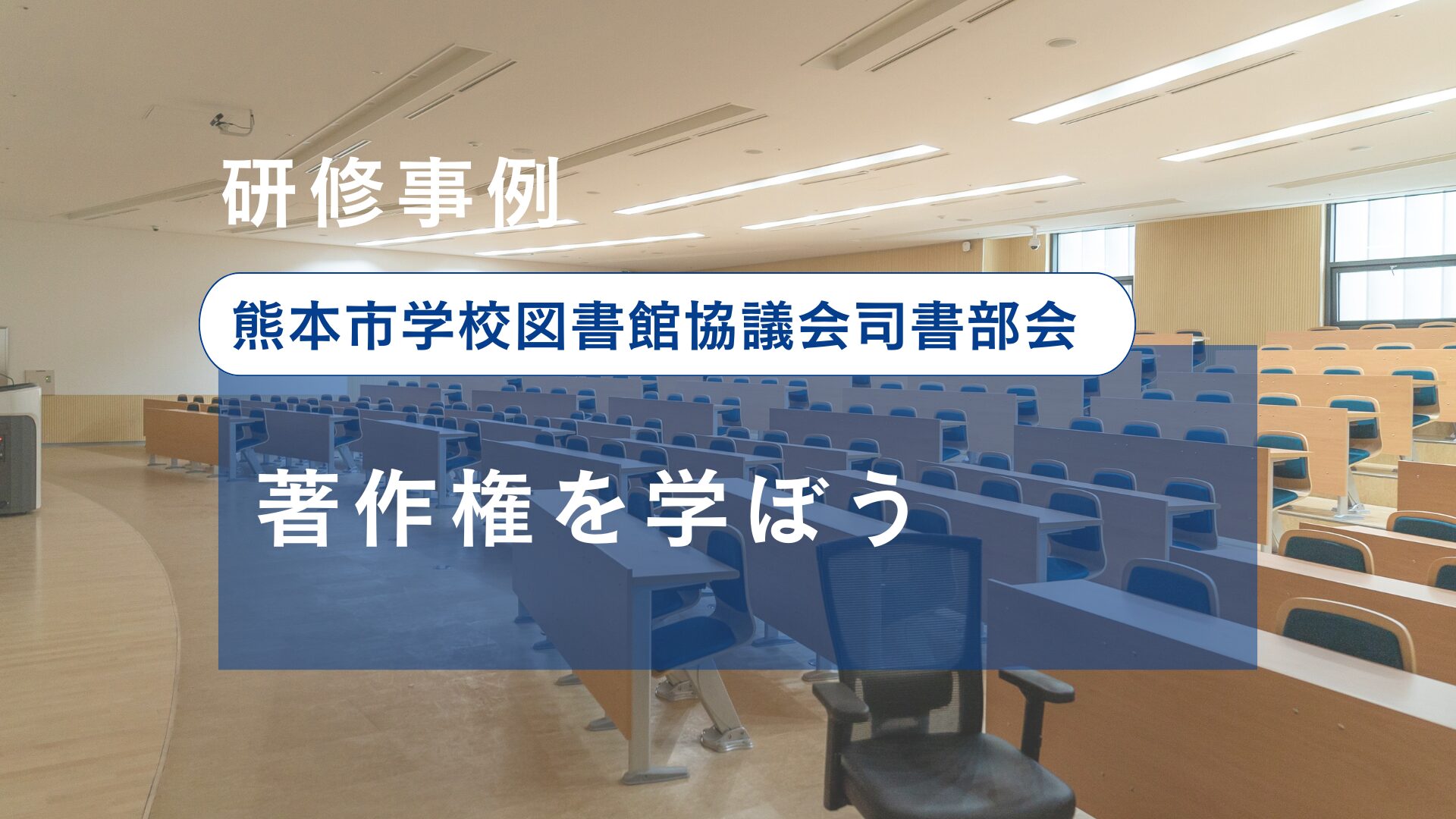 この度は、熊本市学校図書館協議会司書部会の皆様に、このような貴重な機会をいただき、心より感謝申し上げます。 日々の業務で奮闘されている先生方が、著作権と前向きに向き合い、より豊かな図書館活動を展開していくための一助となれば幸いです。