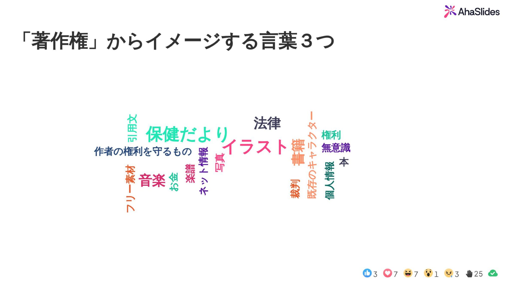 「本日はありがとうございました。著作権については知っていることが多いと思っていましたが、知らないことも多くためになりました。またとても身近にある問題だということを改めて実感しました。」