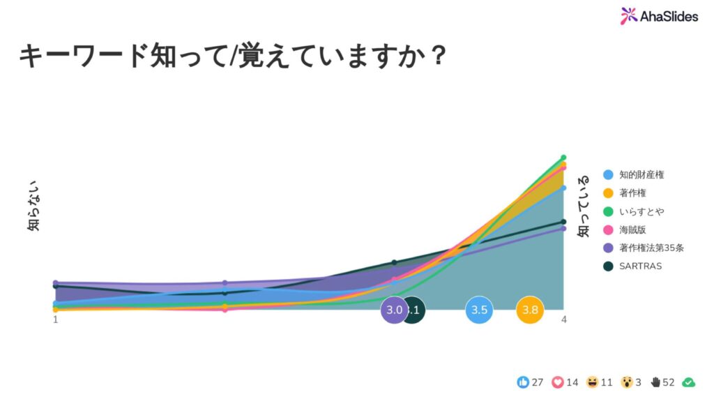 私の研修では、参加者との対話を重視しています。今回も、双方向コミュニケーションツール「AhaSlides(アハスライド)」を活用し、リアルタイムの投票や質問を受け付けながら進める参加型形式をとりました。 研修の冒頭では、まずツールの機能に慣れていただくためのアイスブレイクを実施し、楽しみながら学べる雰囲気づくりを心がけています。