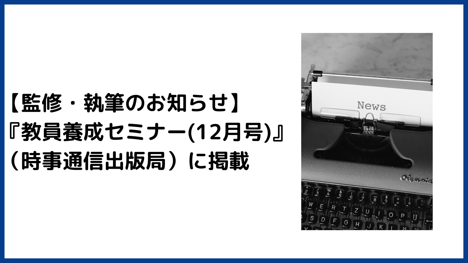 時事通信出版局から発行された『教員養成セミナー12月号』の特集2「先生になってから必ず役立つ!「学校と著作権」のギモン解決」にて、監修・執筆を担当させていただきました!