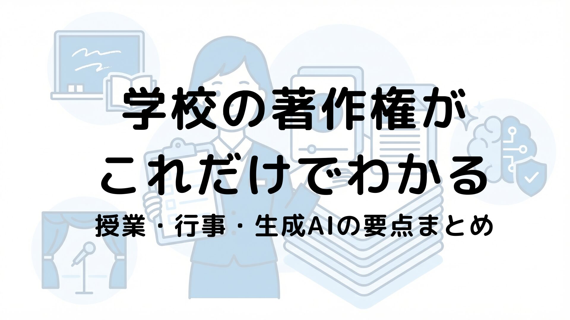 このページでは、著作権について“ざっとでもちゃんと”学びたい教職員の方のために、重要ポイントを厳選して動画と記事でまとめました。