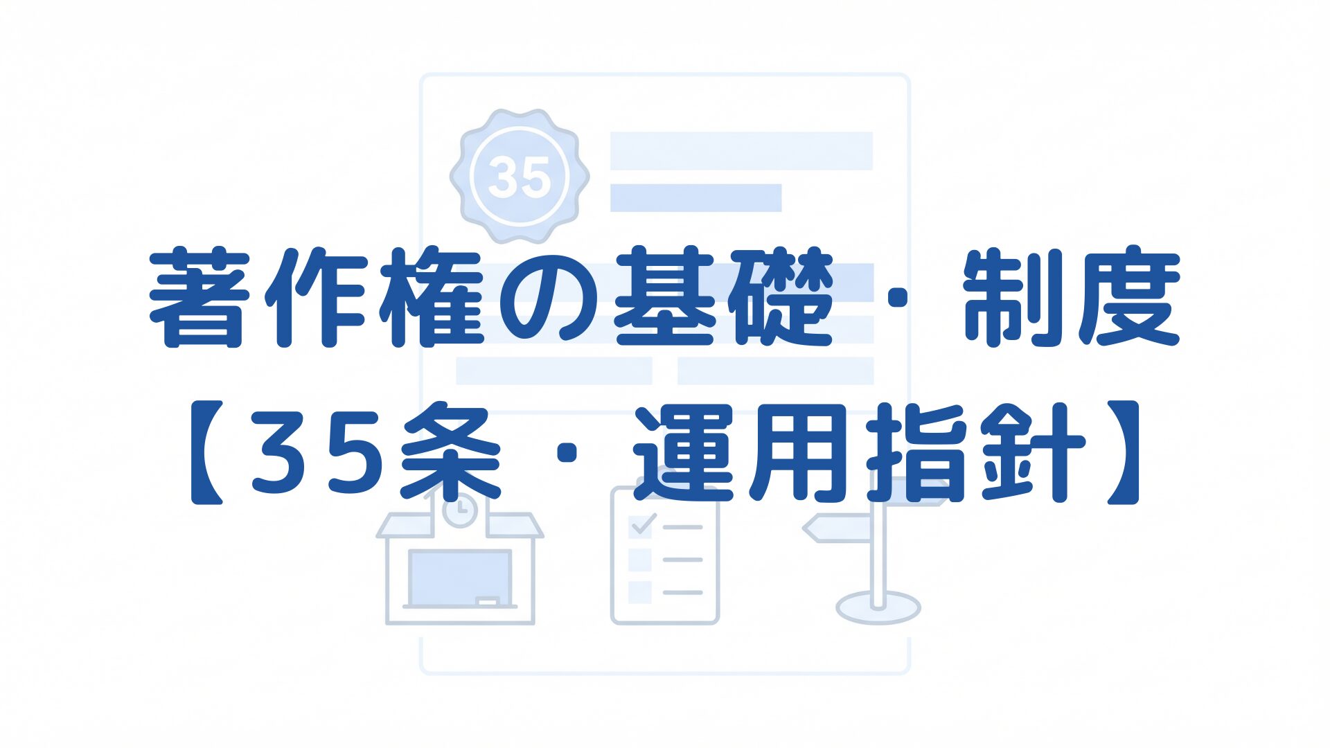 授業目的の利用に関わる著作権法第35条と、関連する運用指針・ガイドラインの要点を紹介します。学校で確認すべき観点(対象・範囲・留意点)を一次情報をもとに整理します。