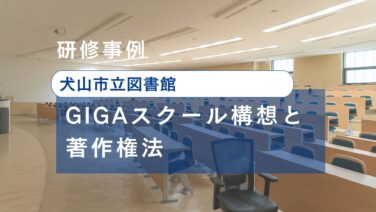 司書向け学校著作権研修の紹介【研修事例】GIGAスクール構想と著作権法(主催:犬山市立図書館) 2025年7月実施の犬山市立図書館での「GIGAスクール構想と著作権法」研修の報告です。著作権の基礎から授業目的公衆送信補償金制度まで、学校現場ですぐに役立つ知識を解説。参加者の声も紹介します。 2025.09.03 2025.10.04司書向け学校著作権研修の紹介